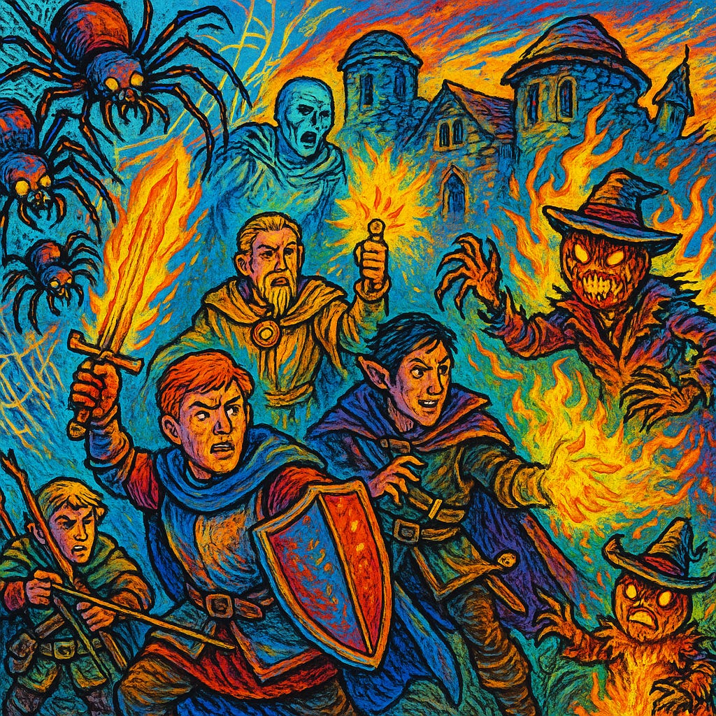 The creatures exuded terror like heat. Fear spread across the camp until Radley, still half asleep, reached for his focus. Fire Bolt ignited the first. Flames spread from one scarecrow to another; the field lit with ghostly orange fire. Urihorn joined the fray, arrows striking true. Traxidor’s Sacred Flame cast daylight where dawn had not yet come.